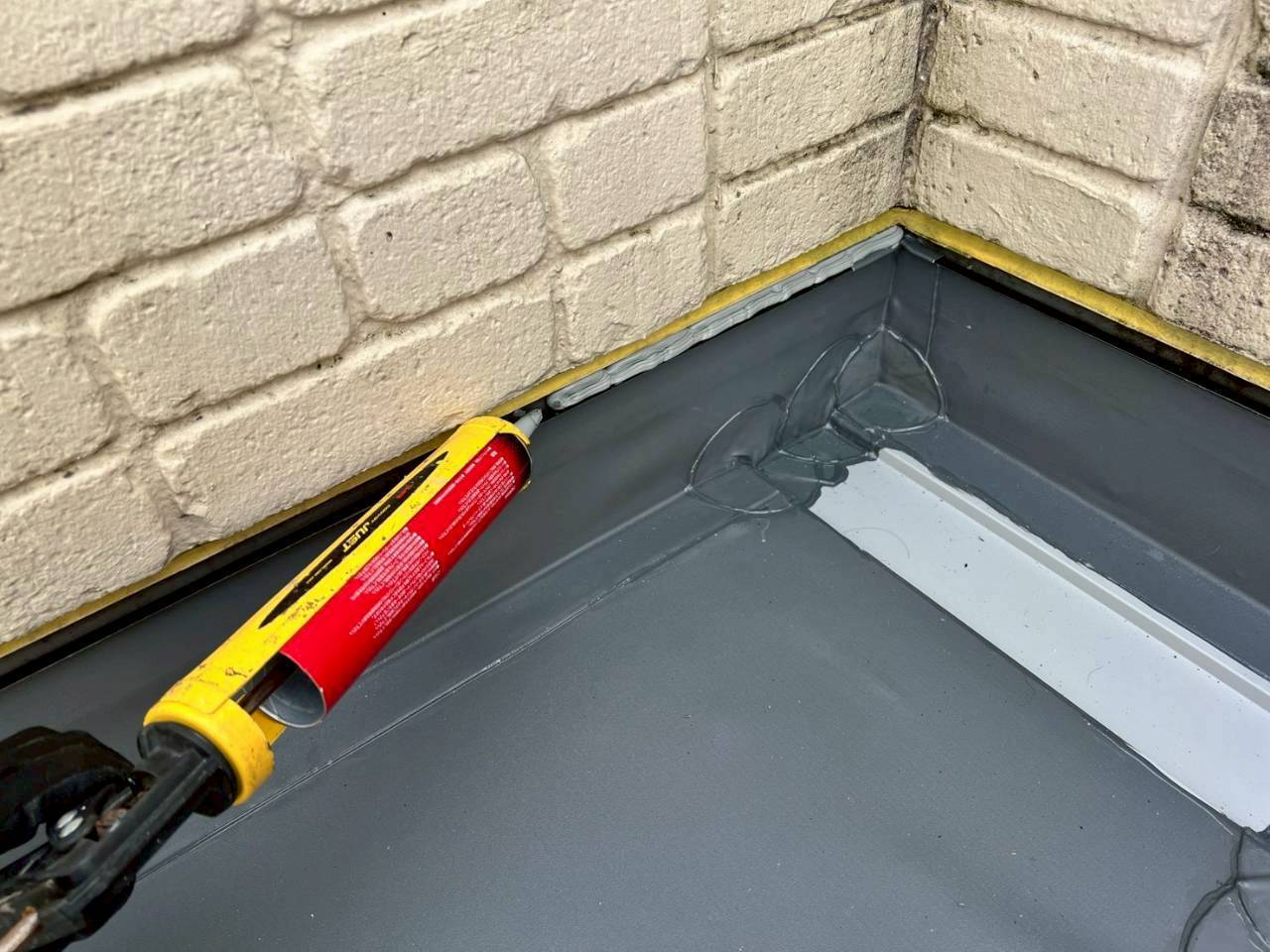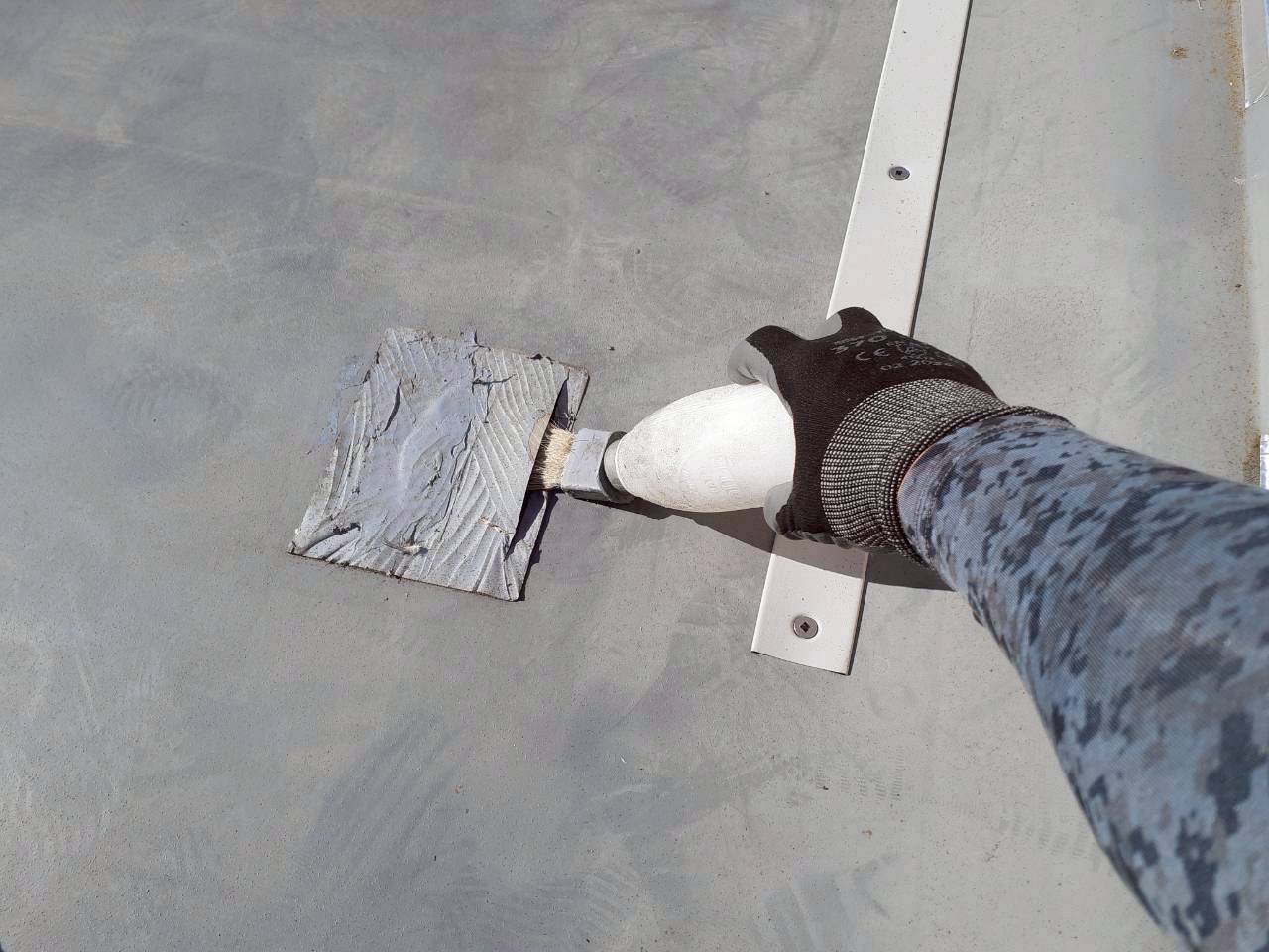 立上り端部の既存シールを撤去してシーリングをしているところです。
