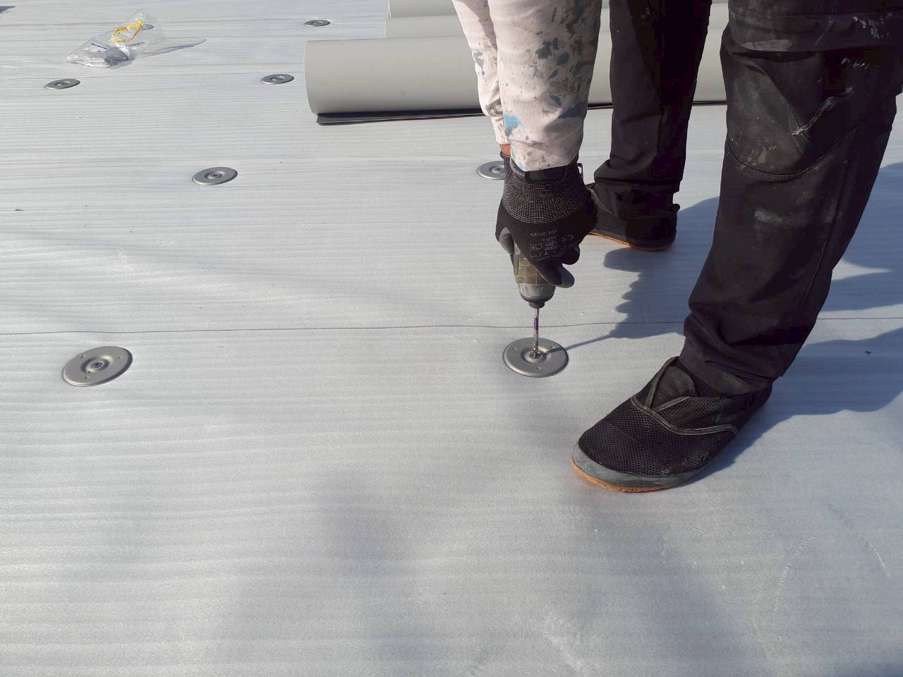 塩ビシート防水機械的固定工法の完了後です。