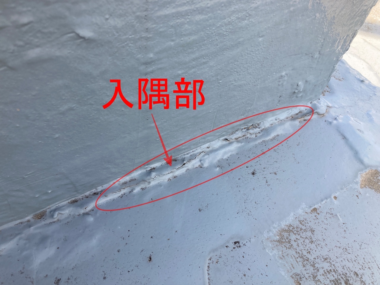 「入隅部(いりすみぶ)にシール処理がされていない」というのは、ウレタン防水の不具合としてよくある施工不良です。